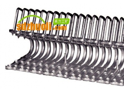 狼牙扣產品特點:板材成形,接頭低平,減少輸送帶運行的阻礙;短扣體結構,適應輕型輸送機的小滾筒要求;連體式帶扣,抗拉強度高。出廠配置:一種長度規格的狼牙扣8根。型號 適用帶厚(mm) 拉力強度(N/mm) 滾筒最小直徑(mm)55# &nb